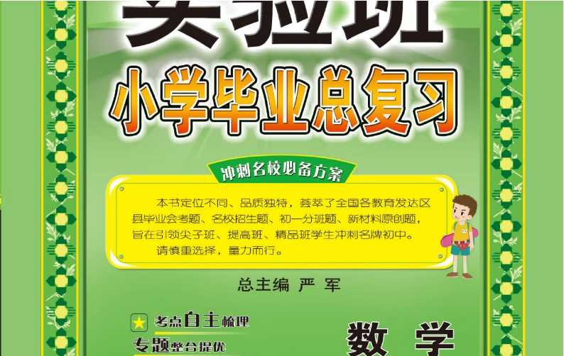 这是一套很好的复习资料,荟萃全国毕业会考题,名校招生题、初一分班题、新材料原创题等。欢迎下载:春雨教育实验班 小学毕业总复习数学【189页PDF文档】百度网盘下载。