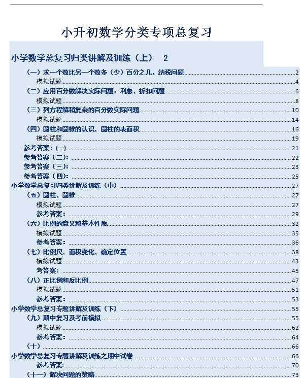 在每一个孩子成长 过程中,有三个节点是孩子们必须跨越的,即小升初,中考,和高考,而较让家长们操心的恐怕就是小升初了。本小编为大家提供小升初数学分类总复习,希望对大家有帮忙欢迎下载:最新人教版-小升初数学分类专项总复习