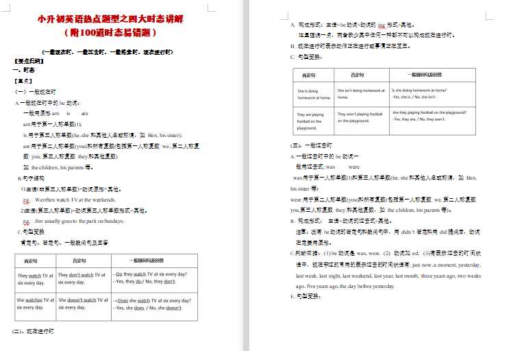 “小升初衔接,培养良好学习习惯很关键,而习惯的培养需要家长和学生共同努力,而英语要怎么复习呢?欢迎下载:小升初英语热点题型之四大时态讲解