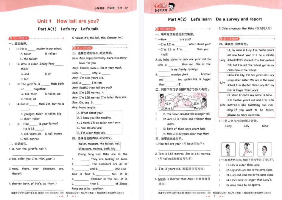 2023春季版六年级下册《53天天练》小学英语 参考答案(人教PEP)六下 英语答案解析 电子版【85页PDF打印文档】百度网盘