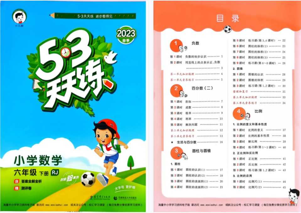 打印版2023版 六下 《53天天练》人教版数学六年级下册53天天练试题卷+答案电子版【105页PDF文档】百度网盘下载