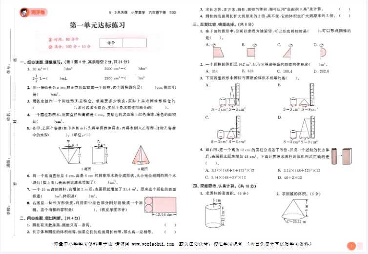 小学六年级下册北师大数学53天天练测评卷含答案的电子版需要的家长点击进入进行下载,期末考试复习前把各个单元的知识点通过测评卷进行一次全面的复习非常重要。2023春小二郎《53天天练测评卷+答案》六年级下册北师大版数学测评卷电子版PDF文档 百度网盘下载